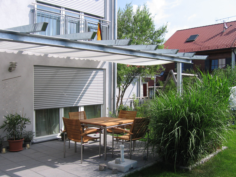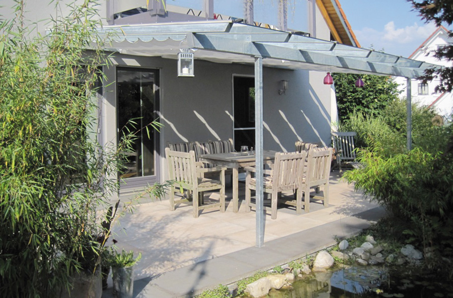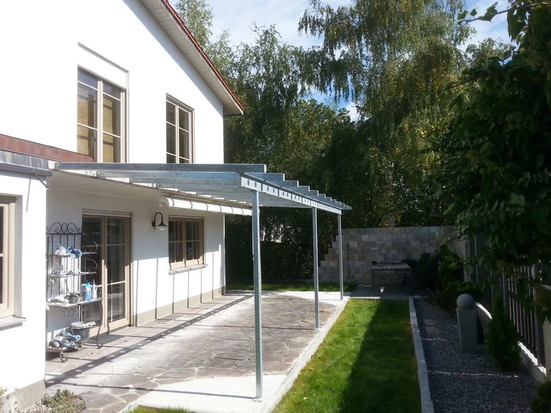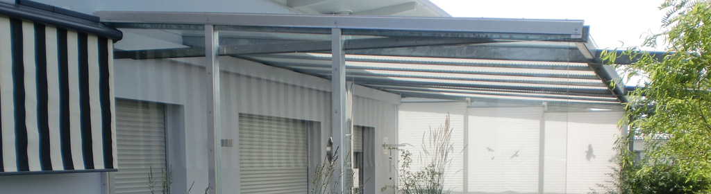 Terasssenüberdachungen aller Art aus Alu, Stahl oder Edelstahl, mit Glasdach, Sonnensegel oder anderer Sonnenabdeckung.